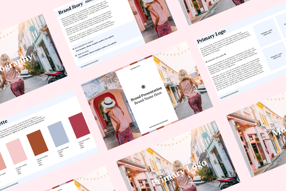 A brand presentation is a crucial part of the design process. It helps your client to feel fully immersed in their brand and allows them to better understand the design decisions and strategy that went in to the final result.